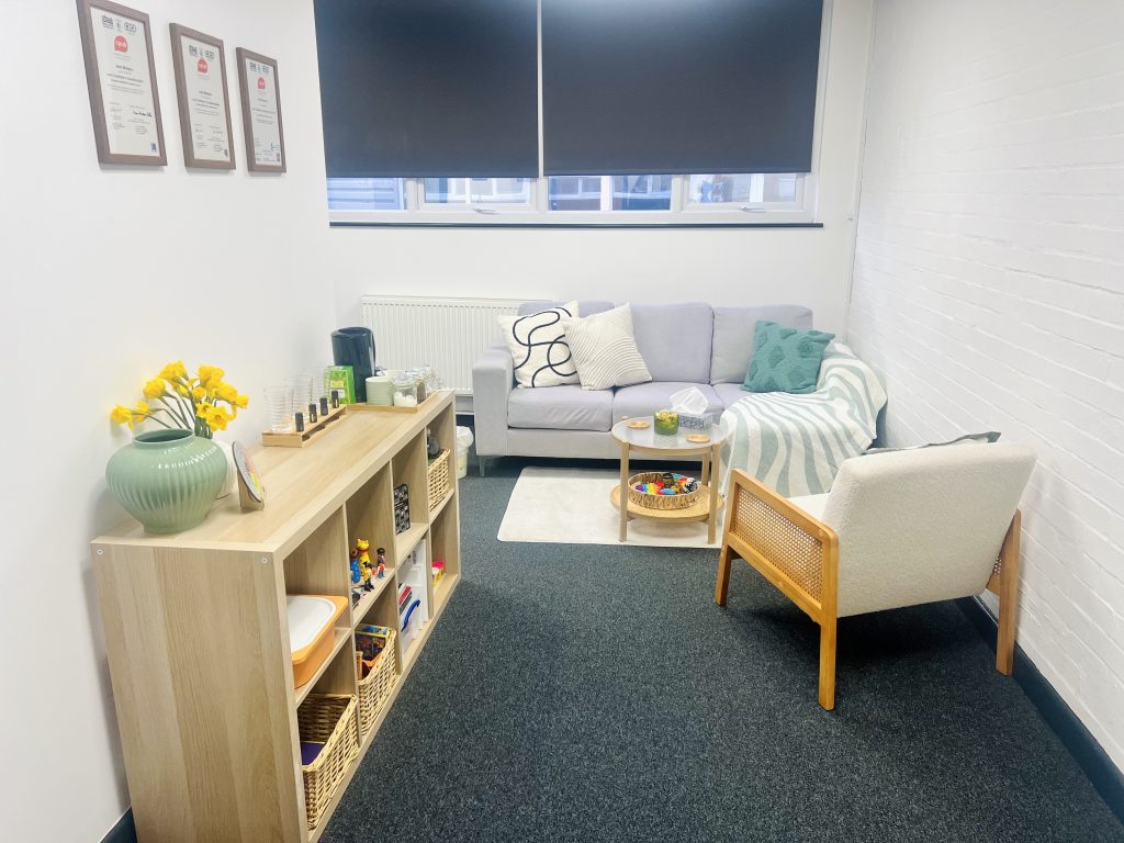 The space is intentionally designed for in-depth talking therapy, ensuring a confidential and peaceful atmosphere where you can explore your challenges without distraction. You can make yourself comfortable on the large sofa, which provides the ideal spot for deep reflection and confidential discussion.